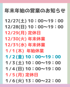 年末年始の営業のお知らせです✨